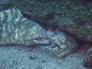 ふと足元を見ると、岩陰に3匹のウツボが!