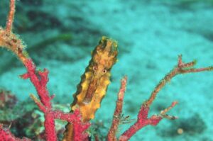 流れはなく、金曜日のシケ後の濁りも日に日に収まってきて、この日は透視度20m以上と冬らしく良好!