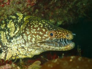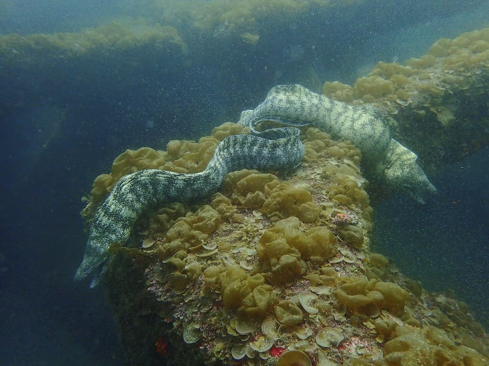 エントリー直後の漁礁の上で既にウツボは10匹以上!